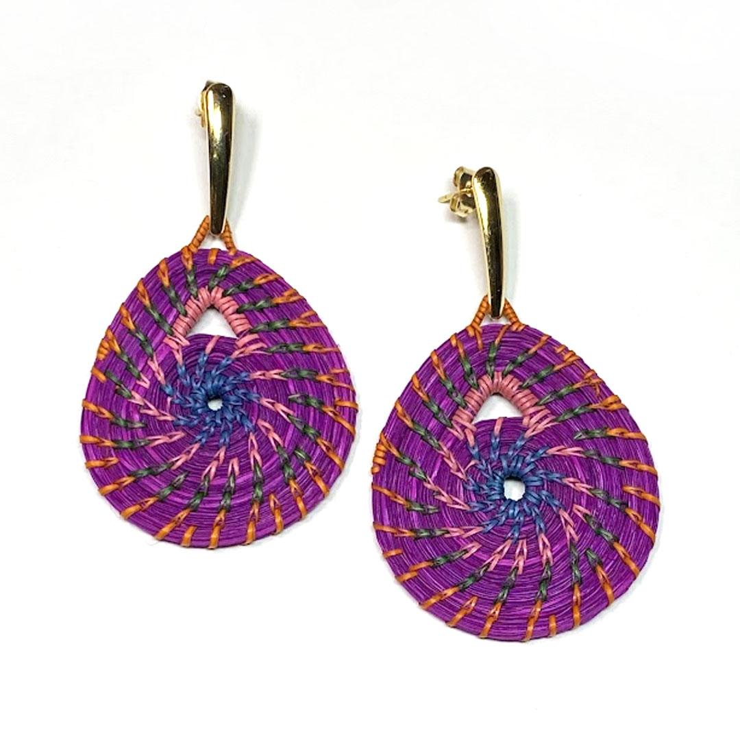 Inspired by Bolivia’s vibrant roots, these Aurora Spiral earrings are handwoven from palm leaves collected in the forest and delicately hand-painted in vivid hues. Each spiral design honors the connection between earth and sun, nature and tradition — a true piece of wearable art crafted by indigenous artisans.