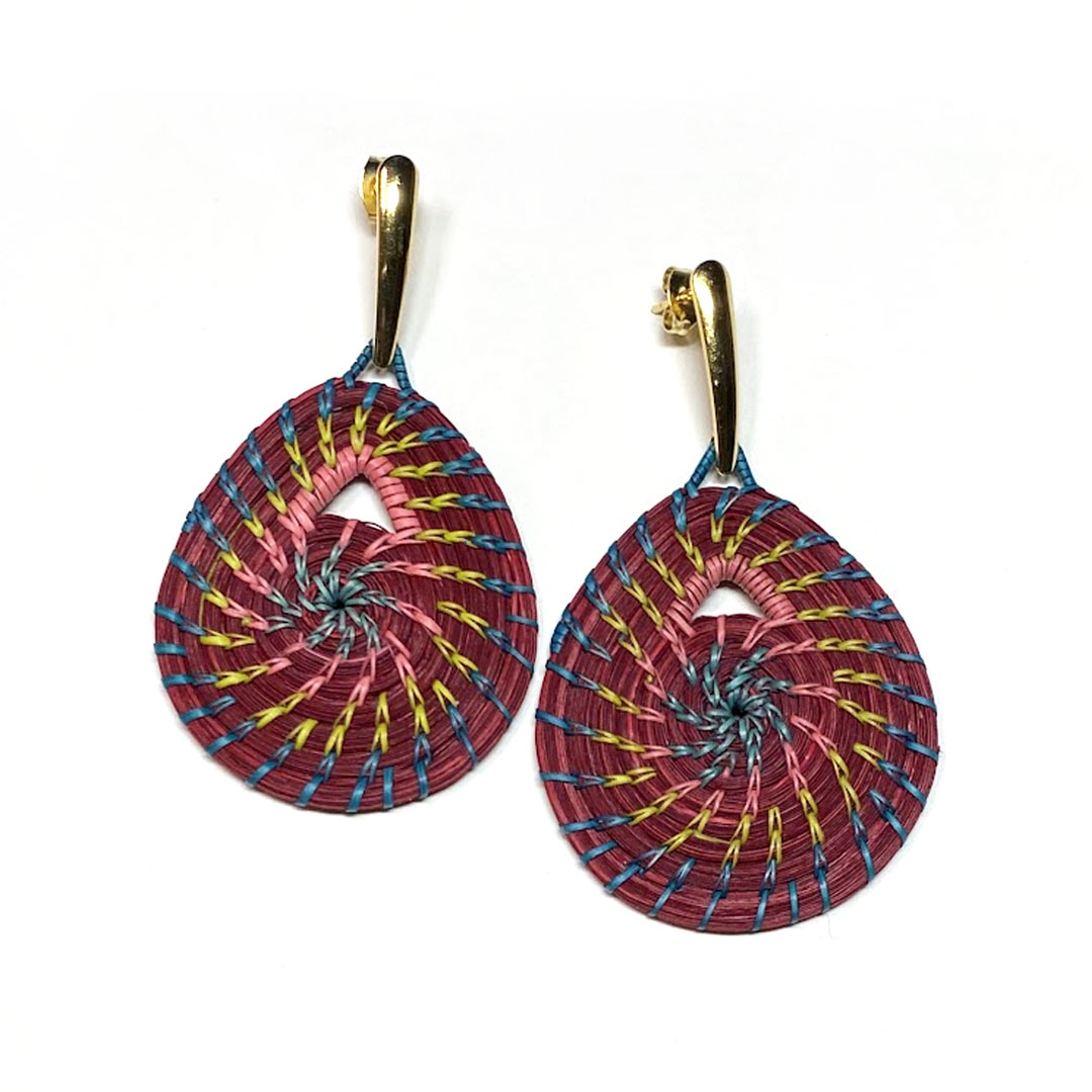 Inspired by Bolivia’s vibrant roots, these Carmesà de Vida (Crimson Life) earrings are handwoven from palm leaves collected in the forest and delicately hand-painted in vivid hues. Each spiral design honors the connection between earth and sun, nature and tradition — a true piece of wearable art crafted by indigenous artisans.