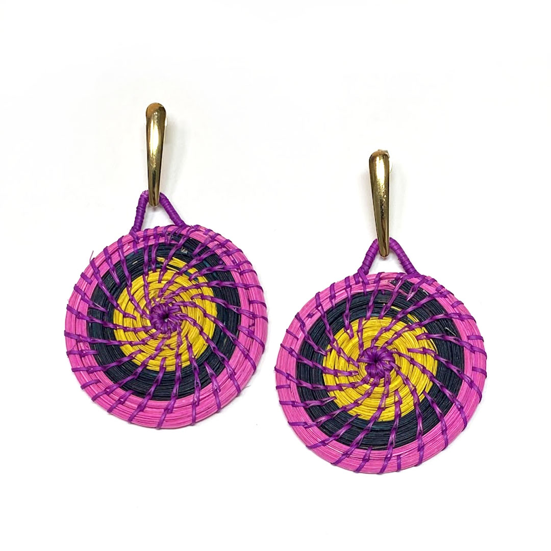 Inspired by Bolivia’s vibrant roots, these Espíritu del Trópico (Spirit of Tropics) earrings are handwoven from palm leaves collected in the forest and delicately hand-painted in vivid hues. Each spiral design honors the connection between earth and sun, nature and tradition — a true piece of wearable art crafted by indigenous artisans.