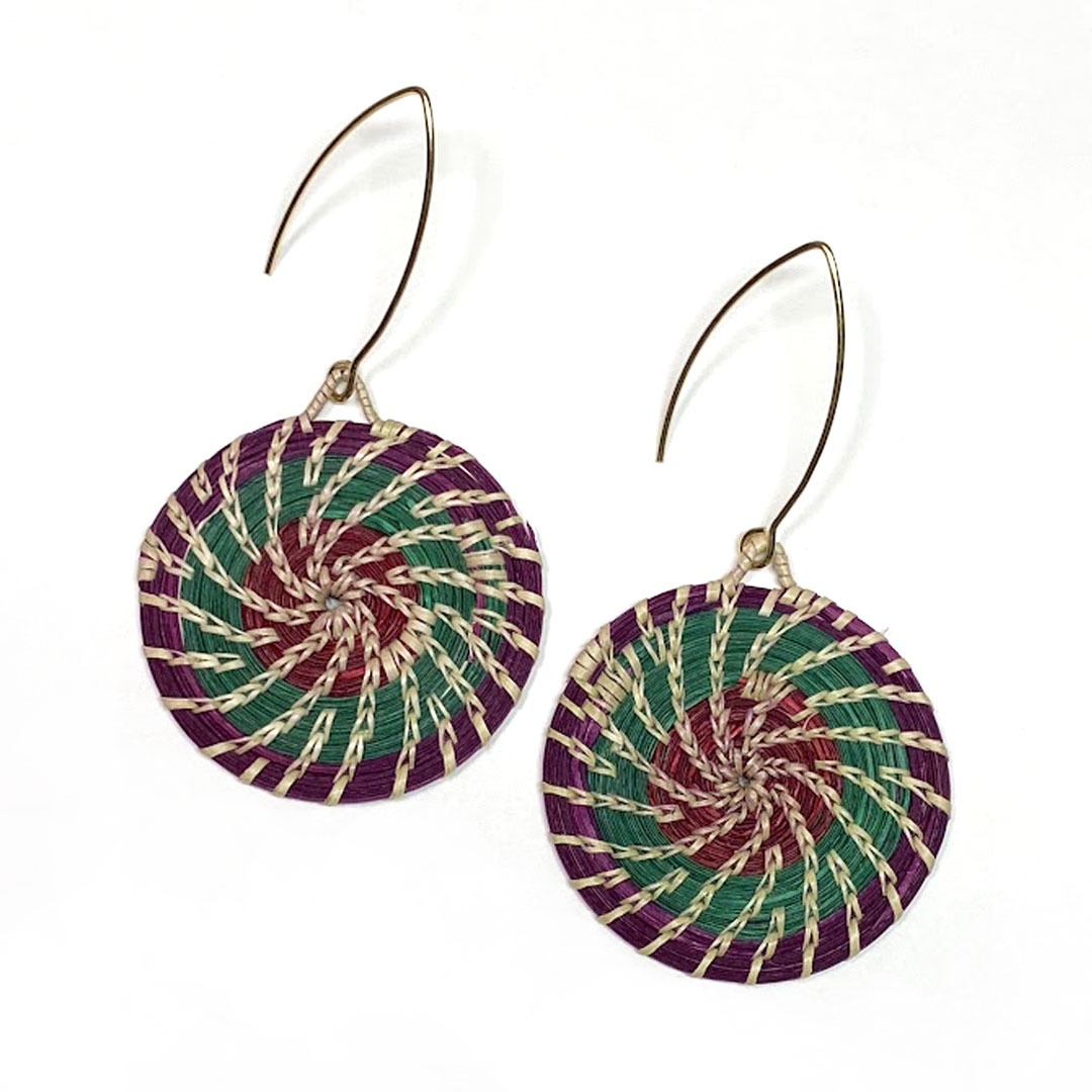 Inspired by Bolivia’s vibrant roots, these Orchid Jungle Spiral earrings are handwoven from palm leaves collected in the forest and delicately hand-painted in vivid hues. Each spiral design honors the connection between earth and sun, nature and tradition — a true piece of wearable art crafted by indigenous artisans.