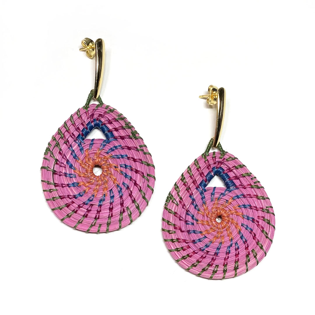 Inspired by Bolivia’s vibrant roots, these Rosa del Jardin (Rose of the Garden) earrings are handwoven from palm leaves collected in the forest and delicately hand-painted in vivid hues. Each spiral design honors the connection between earth and sun, nature and tradition — a true piece of wearable art crafted by indigenous artisans.